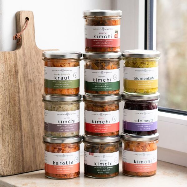 Fermentiertes Bio-Gemüse und Kimchi voll aktiver Kulturen ohne Zusätze